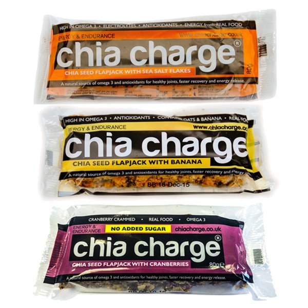 Den Zutaten können sie entnehmen, dass unsere Riegel sowohl schnell brennbare, sowie auch komplexe Kohlenhydrate beinhalten. Mit fast 5 g an Proteinen und Omega 3 & 6 erhält ihr Körper zudem Erholungshilfe. Unser Bananen Flapjack enthält die Hälfte an Meeressalzflocken der Originalen Chia Charge Flapjacks, auch diese werden Ihren Verlust an Elektrolyten ersetzen.