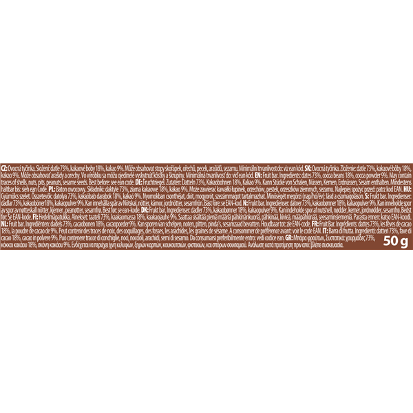 Kakao zählt zu den beliebtesten Geschmacksrichtungen und hat als Zutat viele positive Eigenschaften für den Körper. Wissenschaftliche Studien belegen das Kakao die kognitive Leistungsfähigkeit steigert, blutdrucksenkend wirkt, Diabetes vorbeugt und entzündungshemmend wirkt. Zudem ist der Riegel eine gute Energiequelle und bekämpft Trägheit. Der volle Geschmack der ungerösteten Kakaobohnen sättigt ausreichend schon bei der Zufuhr einer kleinen Menge.