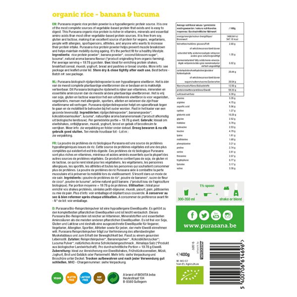 Vegan protein RICE - REIS BANANA LUCUMA 80% 400 Gramm BIO