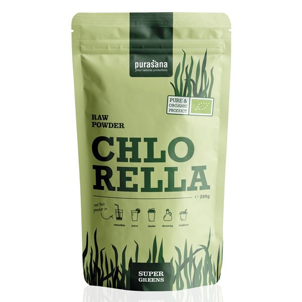 PURASANA GREENS CHLORELLA Raw Powder INDIA, 200 GrammChlorella ist eine einzellige dunkelgrüne Süßwasseralge, die Phytonährstoffe enthält.