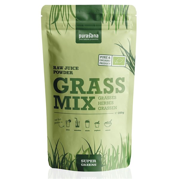 purasana GREENS GRASS MIX SuperGreens JUICE Raw Powder Mix 200 Gramm
