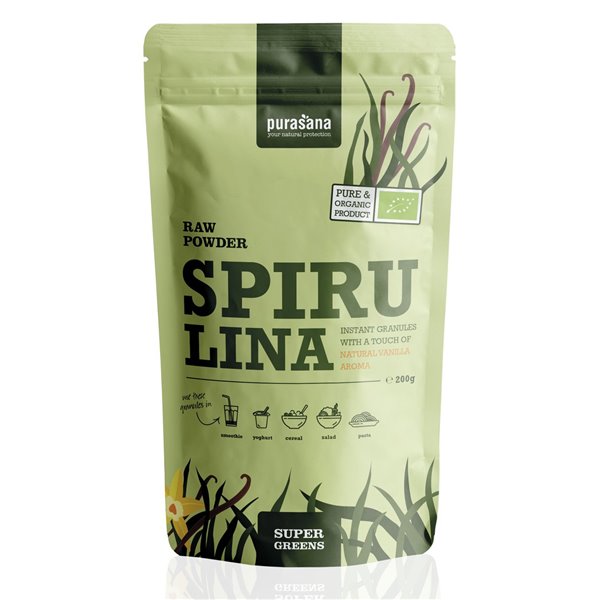 purasana GREENS SPIRULINA Raw Powder GRANULAR VANILLA200 Gramm