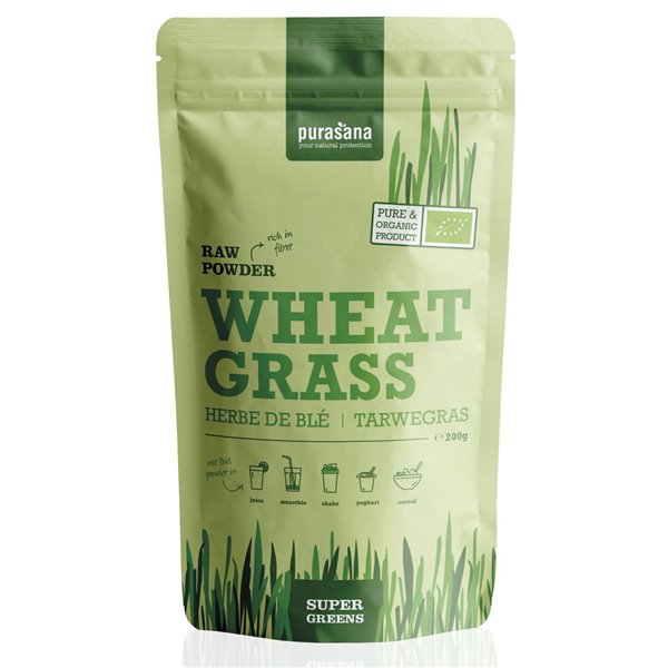 Purasana-Weizengraspulver wird aus jungen Weizengrastrieben gewonnen und in Europa zu einem reinen, grünen Pulver voller Phytonährstoffe kultiviert und verarbeitet.