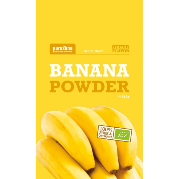 Das Bananen Pulver wird aus vollreifen Bananen zubereitet und bei niedrigen Temperaturen schonend getrocknet und dann pulverisiert, um den vollen Geschmack, die Farbe und die Nährstoffe zu erhalten. Bananen-Pulver besitzt einen natürlich hohen Gehalt an Ballaststoffen, Vitamin B6, Kalium, Kupfer und Mangan und ist eine natürliche Quelle von Thiamin, Riboflavin, Niacin und Magnesium.