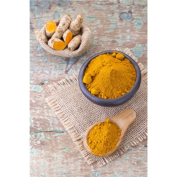 Das aus der Wurzel gewonnene orange-gelbe Pulver enthält Curcuminoide und sind auch ein wesentlicher Bestandteil in Currys.